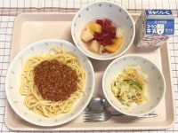 ・ミートソーススパゲッティ・コールスローサラダ・ぶどうゼリーポンチ ・牛乳めん類...