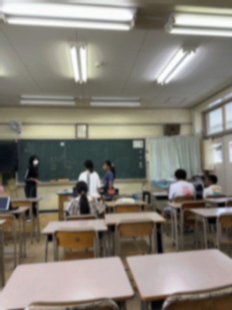 教室では、黒板に当番の名前が書かれ、話し合いの準備が整えられていました。