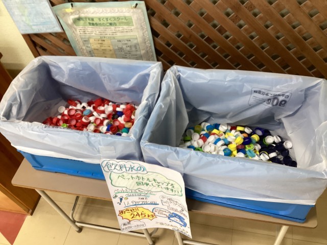 本日より、全校で取り組む「ペットボトルキャップ回収大作戦」が始まりました。