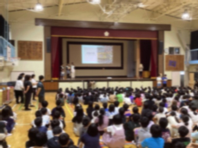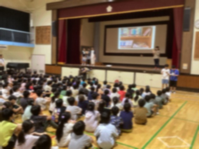 今回の集会では、図書室の使い方や本の分類番号についてのクイズを交えながら、読書への関心を高める内容が紹介されました。