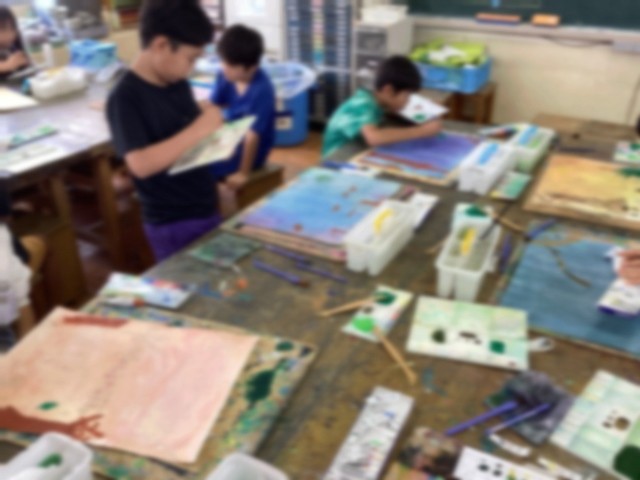 10月9日(木)3・4校時、5年が図工の学習で「小人の森」をテーマにした作品づくりに取り組んでいます。