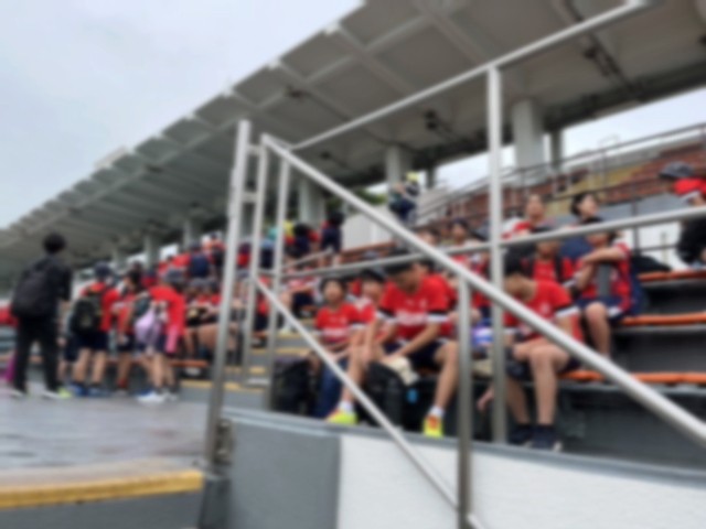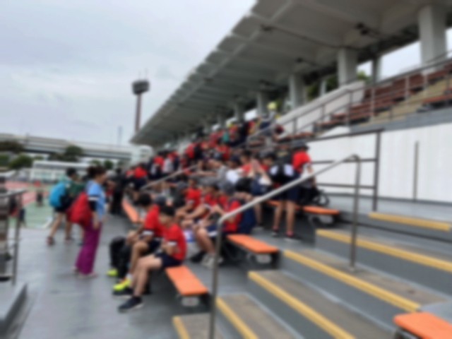 体育大会スタート前、応援席へ
