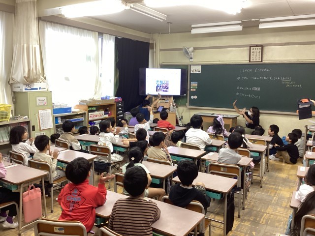 遠藤先生が西小松小学校で過ごした思い出を語ったり、各学年の子ども達が画面越しに感謝の気持ちを伝えたりする温かい時間となりました。