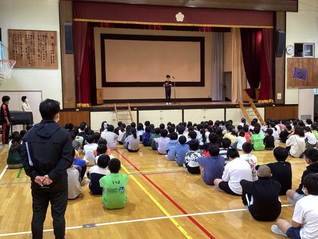 全校で取り組んでいるペットボトルキャップ回収活動について、代表委員会からのお知らせがありました。