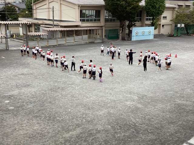 10月20日(月)5校時、体育の授業で4年生がクラスごとに長縄の8の字跳びに挑戦しました。