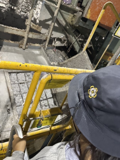 機密文書はコンベアでゆっくりと運ばれた後、江戸川の水が入ったミキサーにかけられ、紙の原料として再利用される仕組みを学びました。子ども達は、リサイクルの過程や安全に処理される工夫について、熱心に話を聞きました。