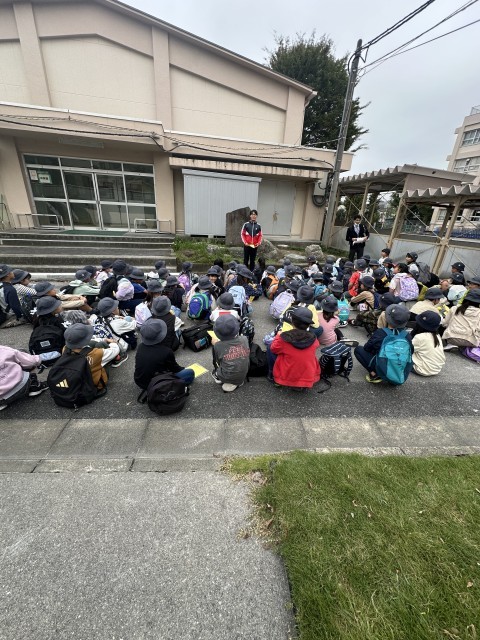 社会科見学を終え、子どもたちは校庭で帰校式を行いました。