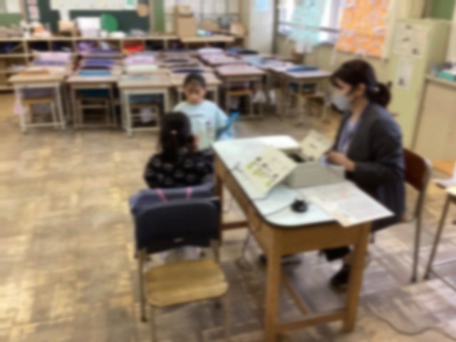 5年生は、新一年生の案内役として、検診会場までの誘導や検査の補助などを行いました。