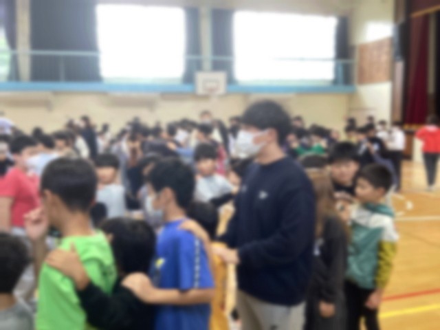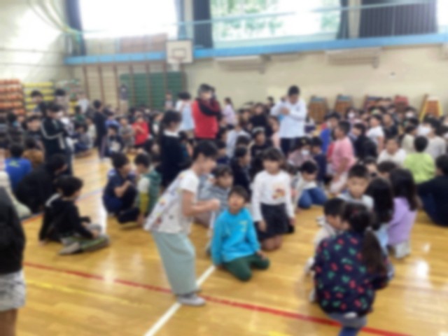 全校児童が体育館に集まり、「仲良しじゃんけん集会」を行いました。