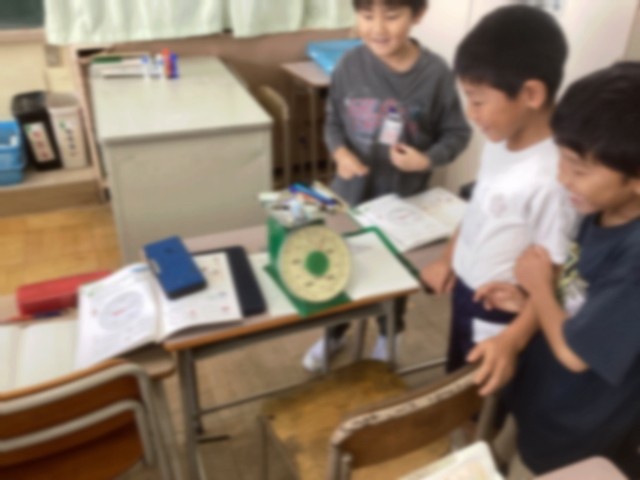 10月24日(月)4校時、3年生が算数の授業で「はかりの使い方」について学びました。