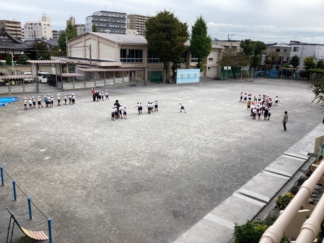 10月29日(水)4校時、1年生が校庭で、元気いっぱい長縄跳びに挑戦しています。