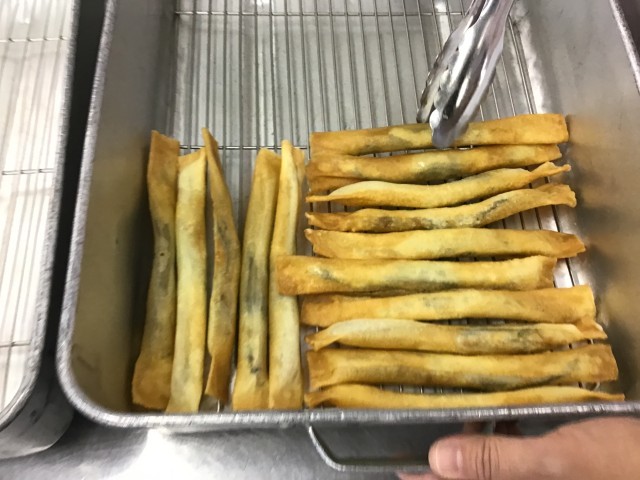 今日はししゃもを春巻きの皮で包み、油で揚げました。
