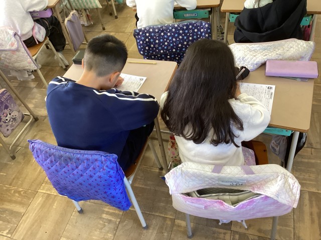 一人ひとりが真剣な表情で、覚えた漢字に挑戦していました。