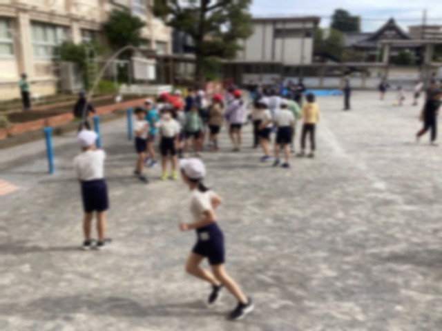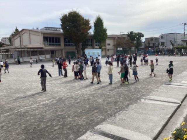 11月のさわやかな青空の下、中休みの校庭では、どのクラスも長縄跳びに取り組んでいます。