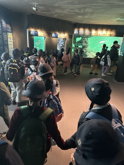 魚が優雅に泳ぐ姿を見て、子ども達はとても楽しそうにしています。