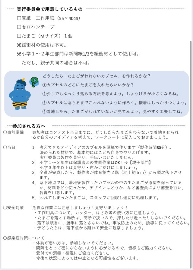 どんな工夫でたまごを守るか、アイデアと発想力が試されます。