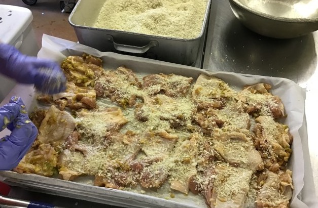 香味野菜で下味をつけて、パン粉をつけて、こんがりと焼きました。
