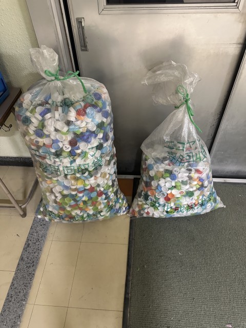 先週と今週で回収したペットボトルキャップが、こんなに集まりました。
