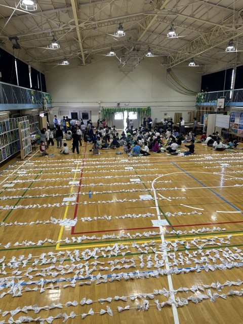 11月19日(火)3・4校時、3・4年生が力を合わせて、体育館で共同制作に取り組みました。