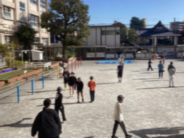 澄んだ秋空のもと、中休みの時間に子ども達が元気いっぱい校庭で遊んでいます。