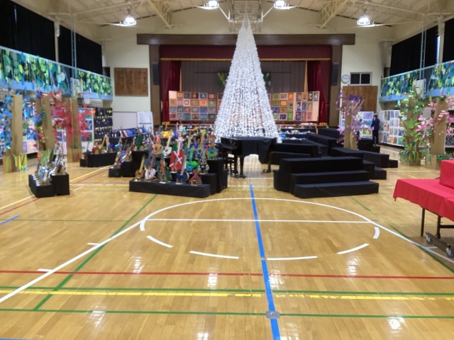 11月25日(火)、展覧会に向けて、体育館では立体作品の搬入が始まりました。