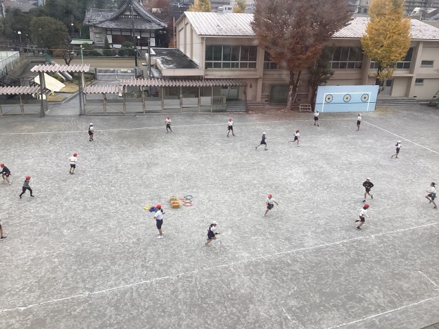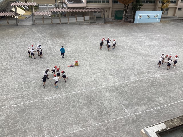 11月25日(火)2校時、5年生は体育の学習で「体つくり運動」に取り組んでいます。