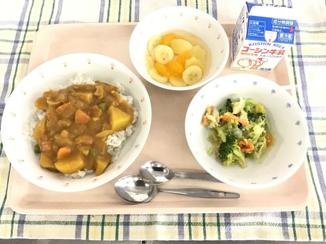 カレーのにんじん、たまねぎ、じゃがいも、フルーツポンチのバナナです。