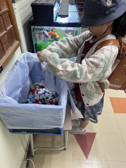12月11日(木)、4年生の子ども達がペットボトルキャップを学校に持ってきてくれました!