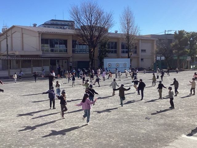 リズムに乗って跳ぶ姿はとても楽しそうで、校庭には笑顔があふれています。