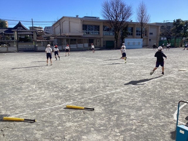 12月15日(月)3校時、6年生が校庭でティーボールを楽しみました!