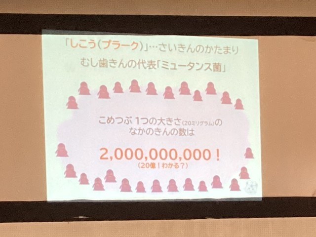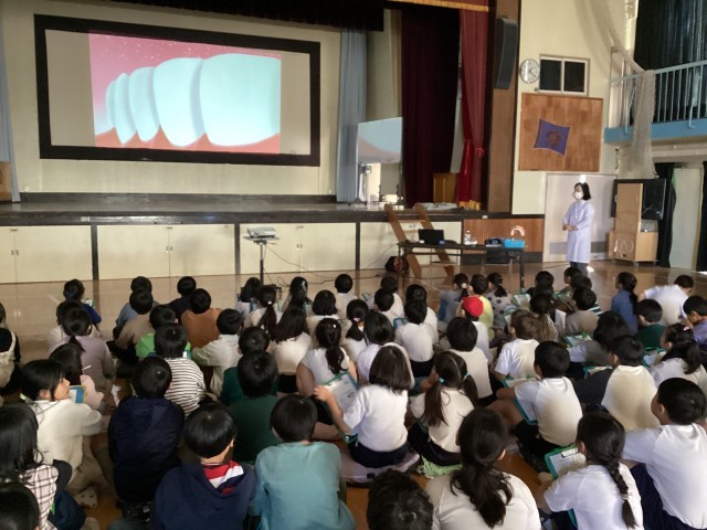 子ども達は、正しい歯ブラシの持ち方や磨き方を教えていただきながら、真剣な表情で話を聞いていました。