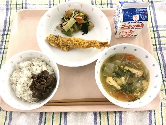 給食の時間には、しっかりかんで味わっていました。よくかんで、歯やあごを丈夫にしましょう!