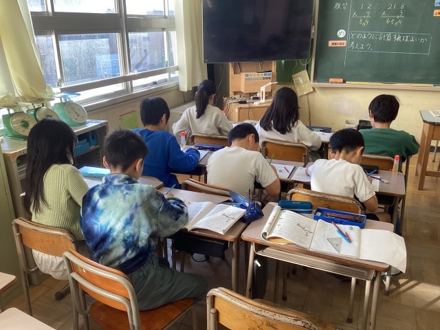 1月14日(水)2校時、4年生は算数の学習で、小数と整数のかけ算の筆算の学習に取り組みました。