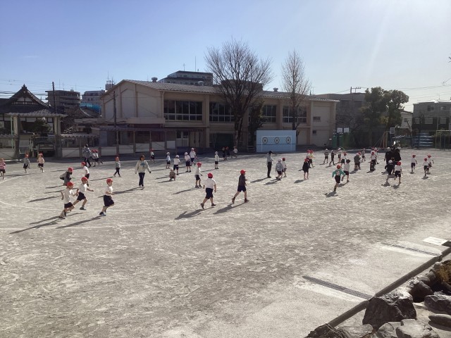 1月26日(月)2校時、1年生が元気いっぱいにランニングの練習に取り組みました。