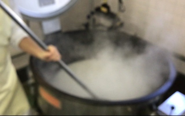 ムラがないようかき混ぜ続けて炊くので、力仕事です。