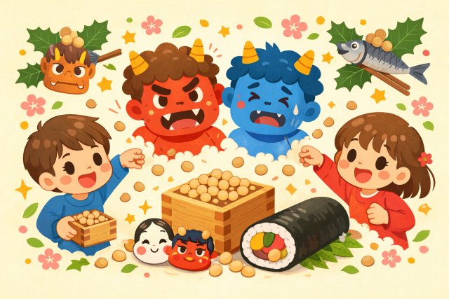 昔の人々は、季節の変わり目には体調を崩しやすかったり、よくないことが起こりやすかったりすると考え、豆まきをして邪気を追い払い、一年の健康と幸せを願ってきました。