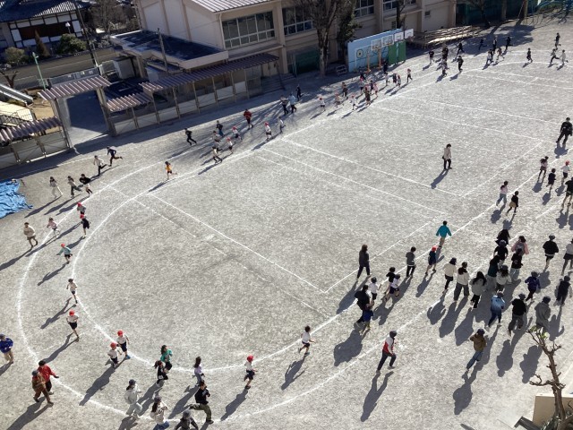 校庭では、両学年の児童がそれぞれのコースを元気に走り、爽やかな空気の中で体を動かす姿が見られました。