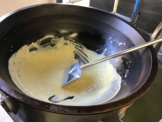 焦げないように火加減に気をつけて、数十分かき混ぜ続けます。