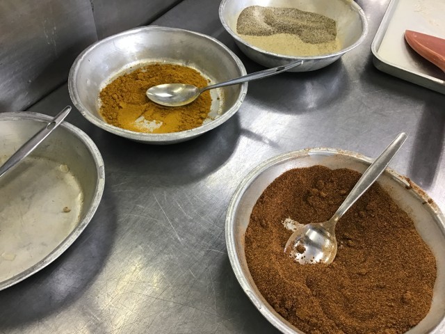 いくつかのスパイスを組み合わせた、にしこ給食室特製のチリコンカンです。