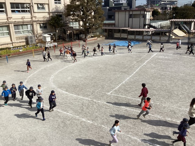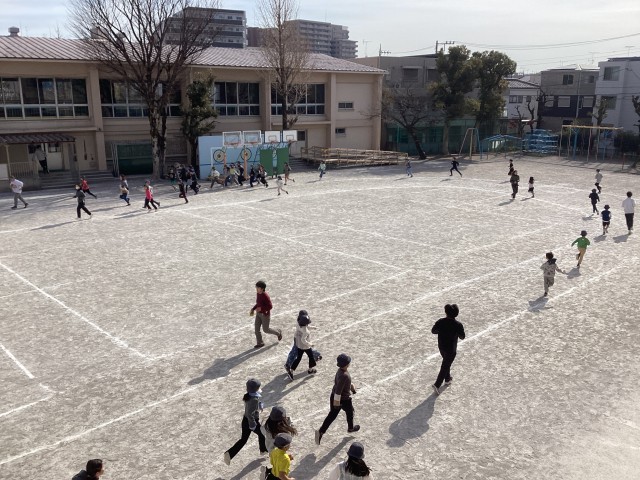 校庭を元気いっぱいに走り、学年をこえて体を動かす時間となりました。