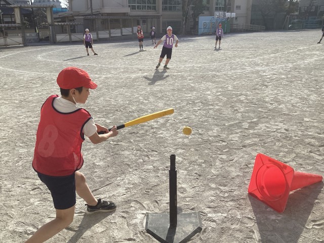 2月6日(金)1校時、4年生は体育の学習でティーボールに取り組みました。