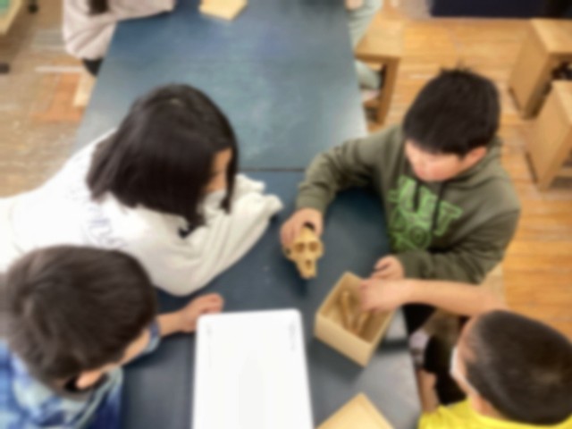 普段はなかなか見ることのできない本物の骨にふれることで、子どもたちはより関心を高め、意欲的に学習に取り組んでいました。