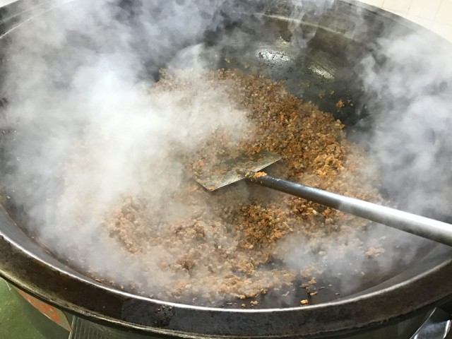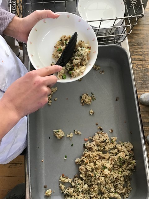 今日のチャーハンは、煮豚入りです。煮豚も、給食室で手作りしました。