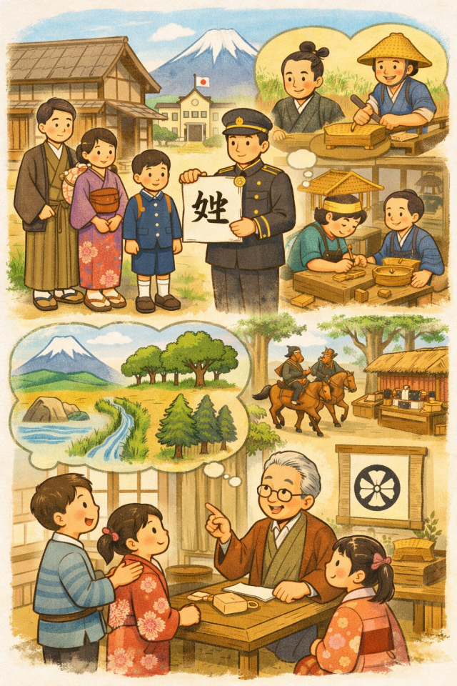 苗字を名乗るようになったことで、戸籍が整えられ、学校や仕事、地域社会の中で人と人とのつながりが分かりやすくなっていきました。