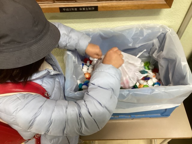 2月13日(金)朝、子ども達が、ペットボトルキャップを持ってきてくれました!