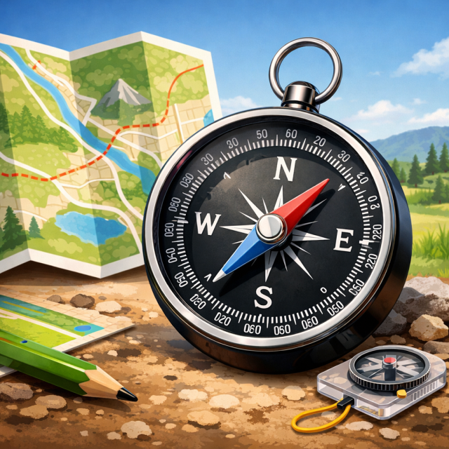 方位磁石は、北・南・東・西の方向を知るための大切な道具で、理科の学習や地図を読むとき、防災の場面など、私たちの生活をさまざまな場面で支えています。