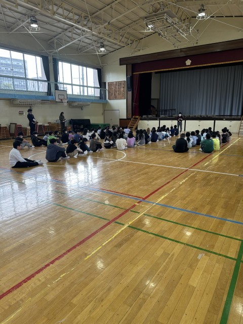 2月18日(木)1校時、4年生が体育館でスケート教室に向けた学年集会を行いました。