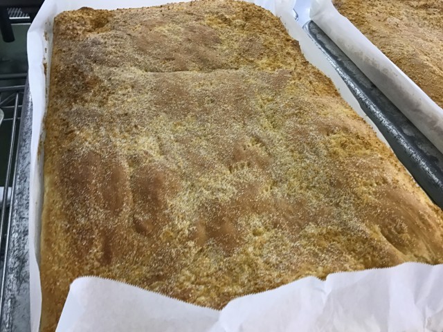メープルシュガーをパンの表面にちらし、こんがり焼きました。