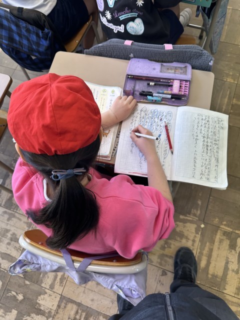 子ども達は、身の回りにあるカタカナの言葉を思い出したり、教室や生活の中で見つけたりしながら、次々とノートに書き出していました。