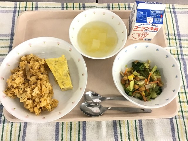 赤いごはんに、緑色のパセリが入って、彩りが綺麗になりました。